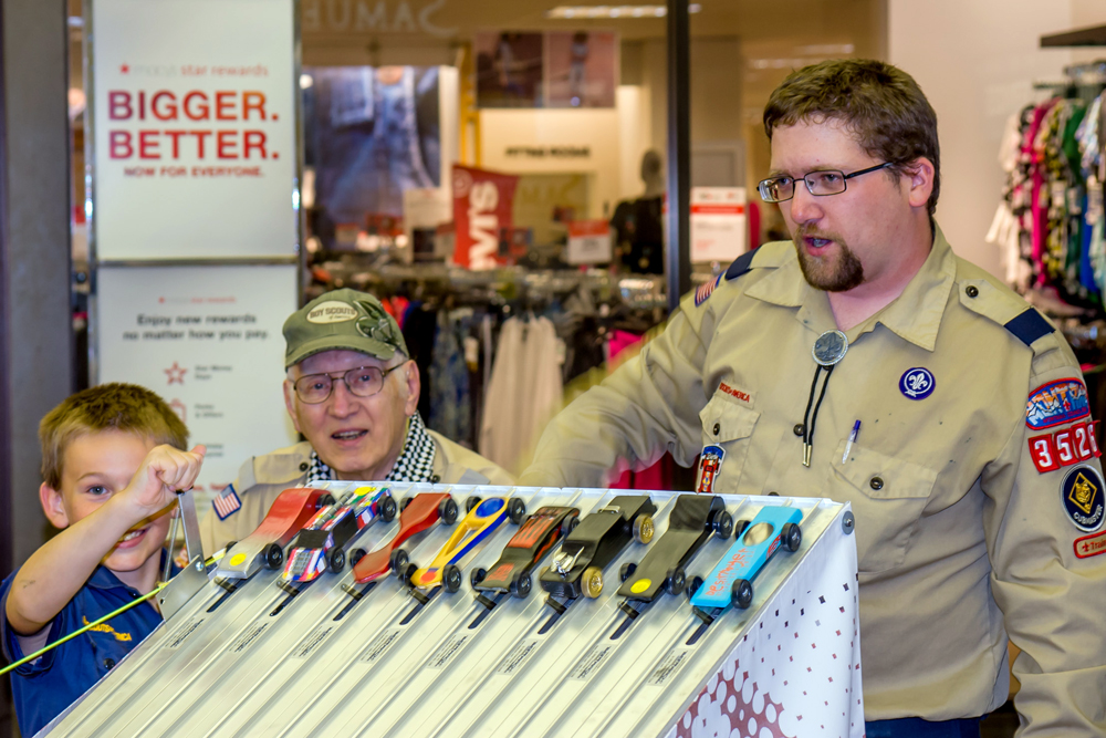 What a wonderful day of racing!! The fastest Pinewood Derby cars in the state of Montana gathered at the Gallatin Valley Mall to show off their great designs and speed. It was exciting!